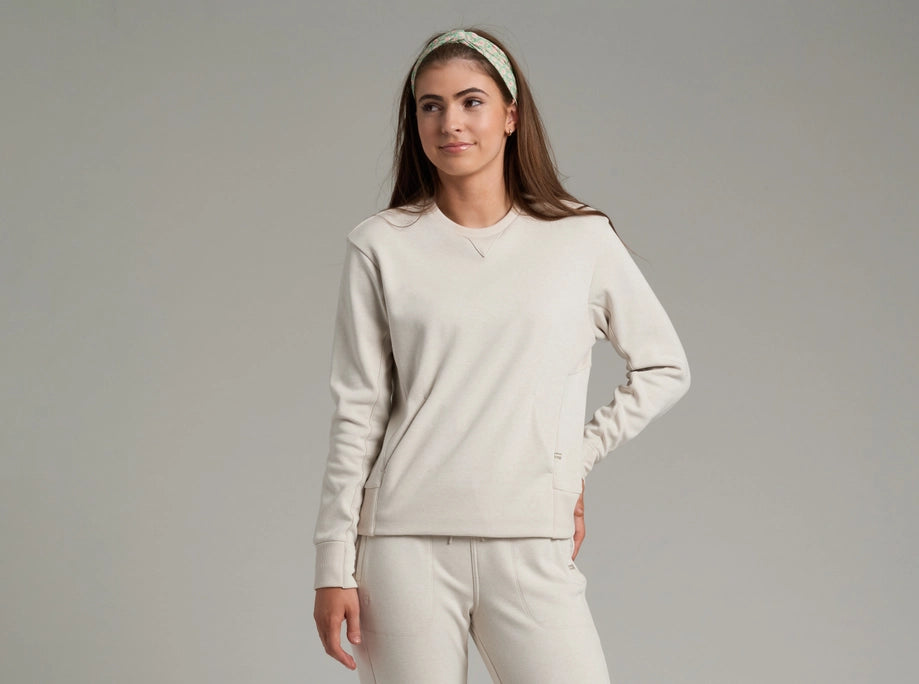 Silky soft and ultra KOZY™! Our fleece-backed knit fabric elevates crewneck comfort to a new level. Featuring stylish ribbed panels and a kangaroo pocket, our timeless design is perfect for casual social gatherings, travel, or simply lounging around the house. So go ahead and get KOZY™!